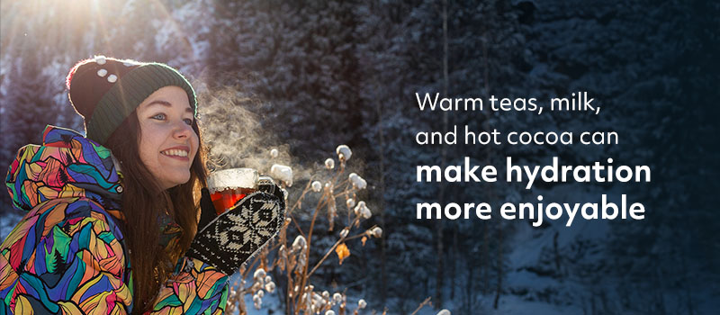 Hydration isn't limited to just water. Warm teas, milk, and hot cocoa can make hydration more enjoyable while adding comfort to your cold winter day. Try adding these drinks to your routine: