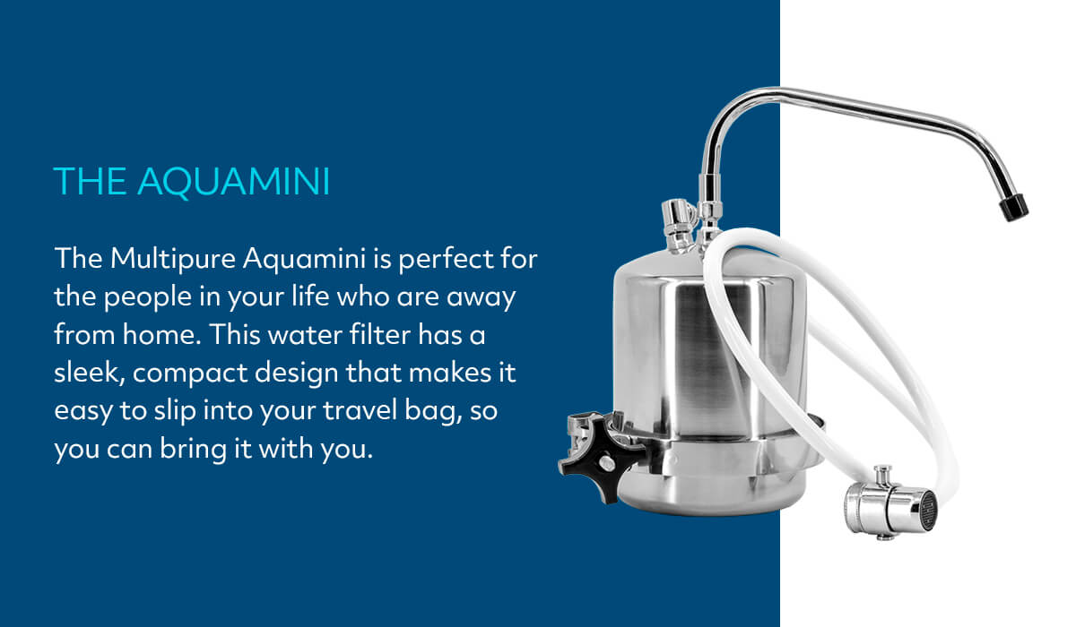 You deserve safe drinking water, regardless of where life takes you. The Multipure Aquamini is perfect for the people in your life who are away from home. This water filter has a sleek, compact design that makes it easy to slip into your travel bag, so you can bring it with you. You can use the Aquamini anywhere with a sink, including: