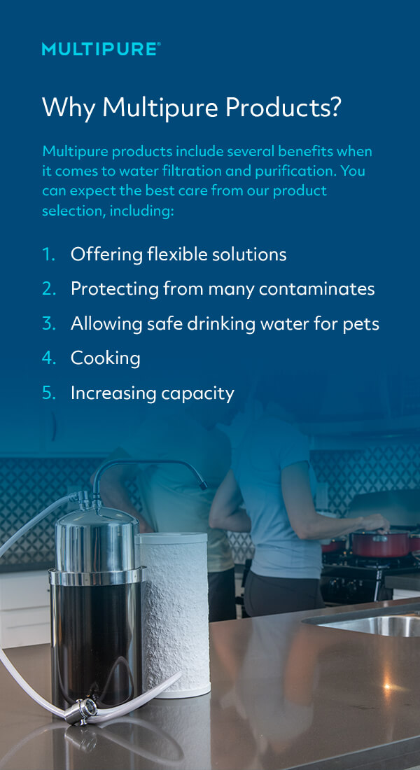 Multipure products include several benefits when it comes to water filtration and purification. You can expect the best care from our product selection, including: